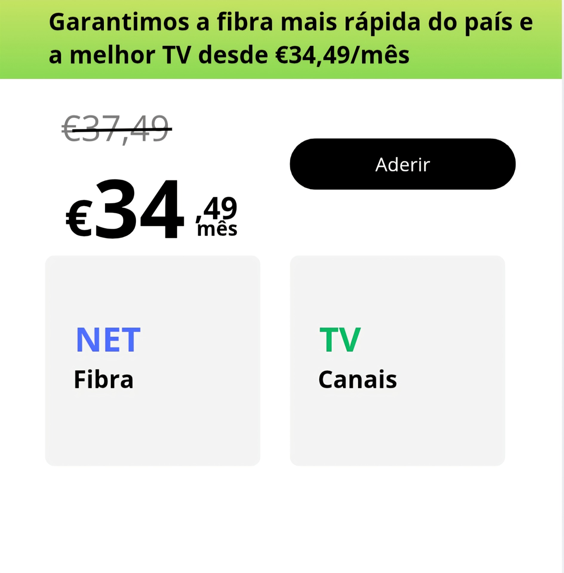 "A minha adesão foi simples: serviço de internet fixa de 1 Gbps com telefone, televisão e 2 telemóveis associados. A instalação foi rápida, e o cancelamento com a minha anterior operadora (já estava fora de fidelização) foi tratado sem dramas. Desde então a experiência tem sido exelente com muito boa estabilidade."